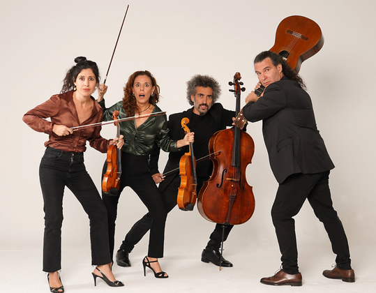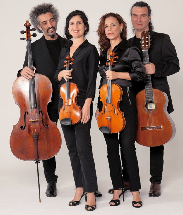 universo de la música de cámara, al incorporar una guitarra española al trío de cuerdas. No existiendo casi repertorio para este formato, cuentan con arreglos propios y originales, haciendo de la necesidad una virtud, generando un nuevo espacio sonoro que han llenado con música del mundo. Un camino y un sonido propio inspirado en compositores clásicos, creando nexos con compositores nacionalistas y de diferentes músicas tradicionales del mundo como A. Piazzolla, Manuel de Falla, E. Granados, Villa Lobos, Gershwin, entre otros.